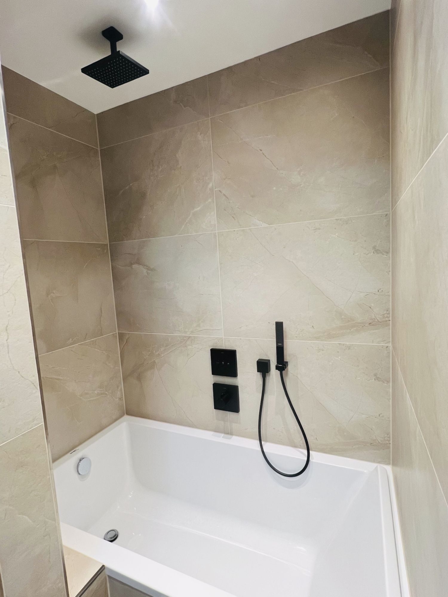 Im Burghotel Burg Rabenstein in der Region Bayreuth haben wir in Zimmer 401 eine umfassende Badrenovierung realisiert. Das neue Bad ist fugenlos gestaltet, wodurch ein moderner und pflegeleichter Raum entstand. Ein neuer Waschtisch, ein Dusch-WC sowie die Wanne mit viereckiger Regenbrause an der Decke sorgen für Komfort und Funktionalität.